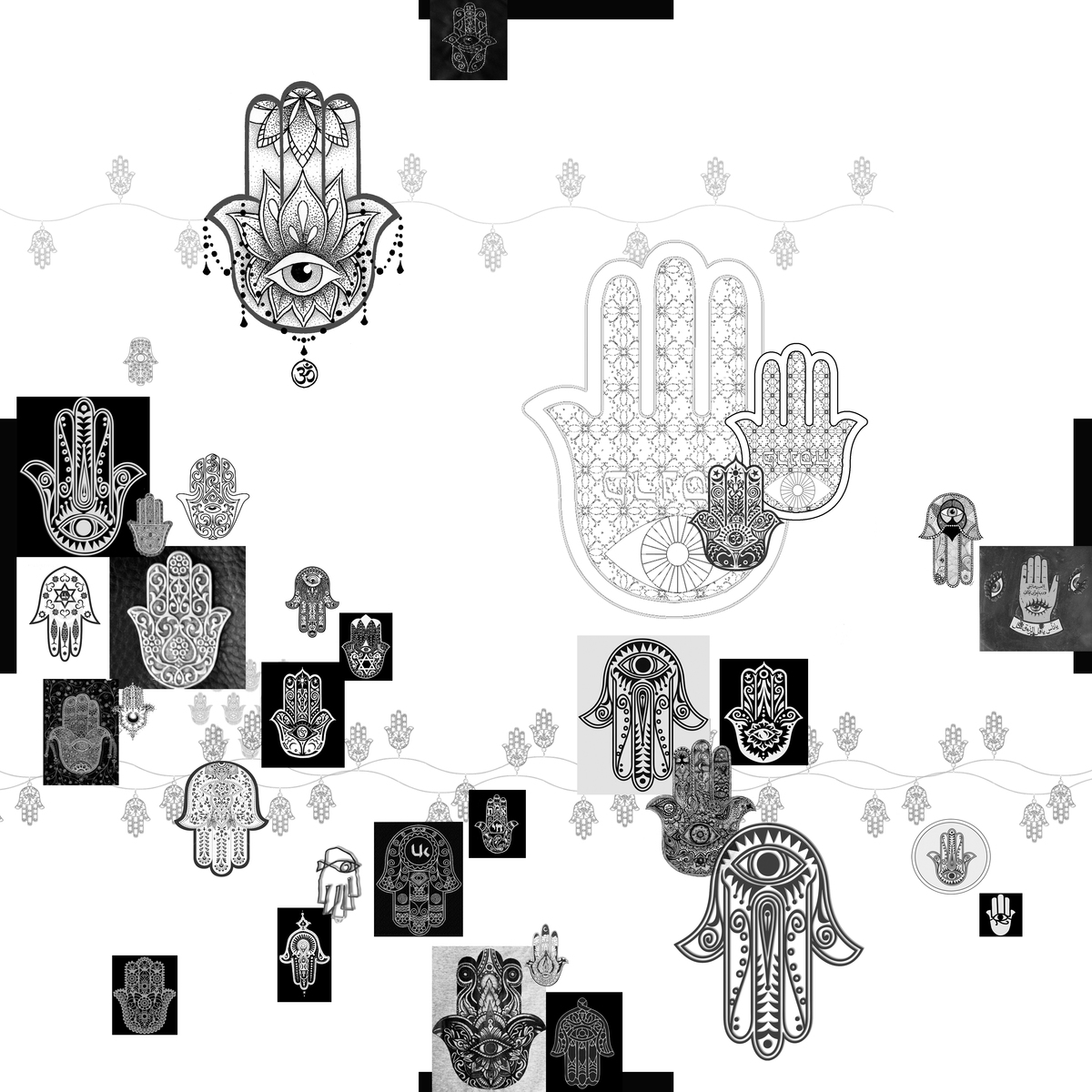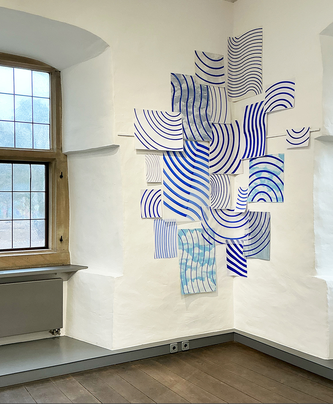 Wandarbeit aus bemalten Papieren und Tapeten