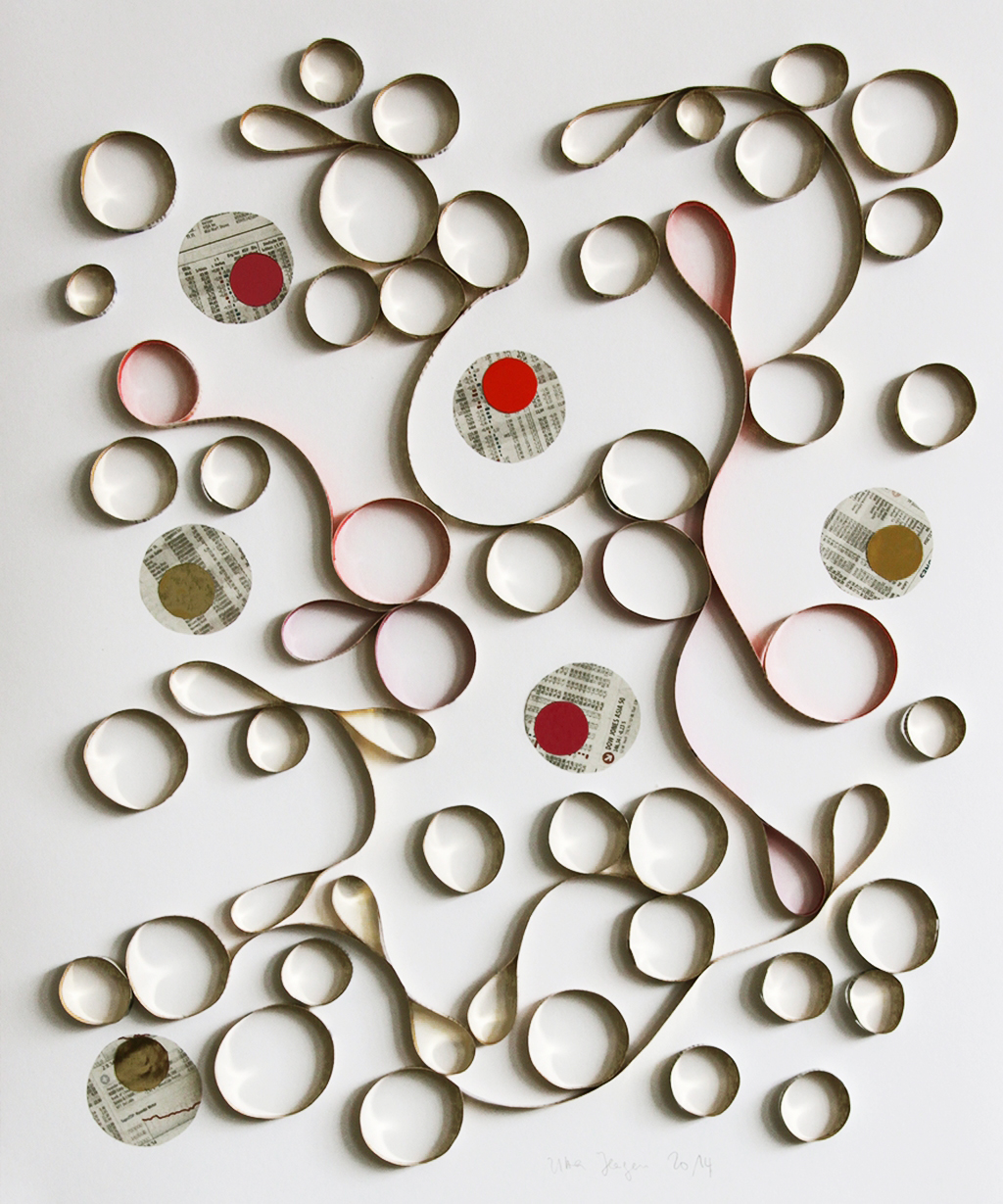 10 Unikate aus zerschnittenen Börseninformationen, Gold- und Farbfolie
