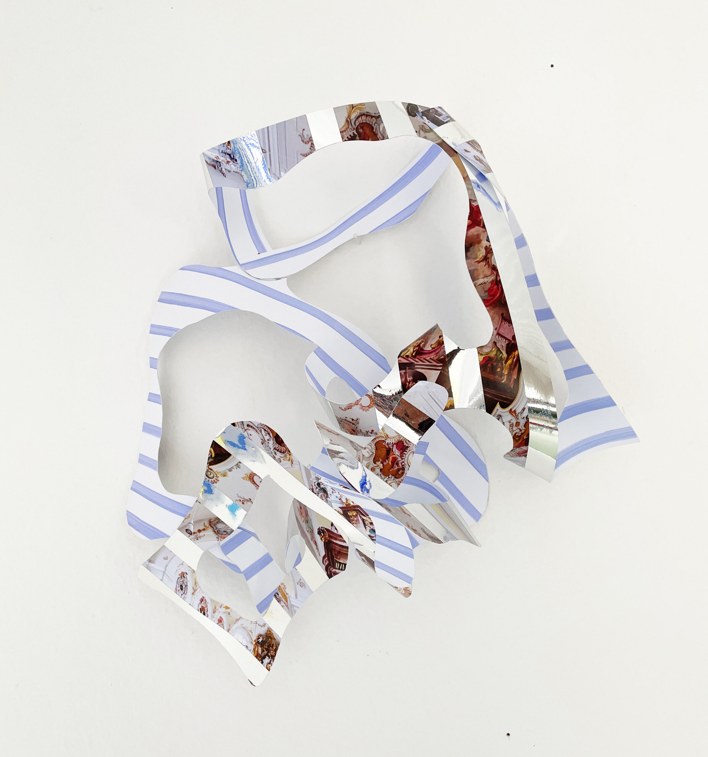 Acrylfarbe und Spiegelfolie auf Fotografien von barocken Räumen, zerschnitten und verklebt