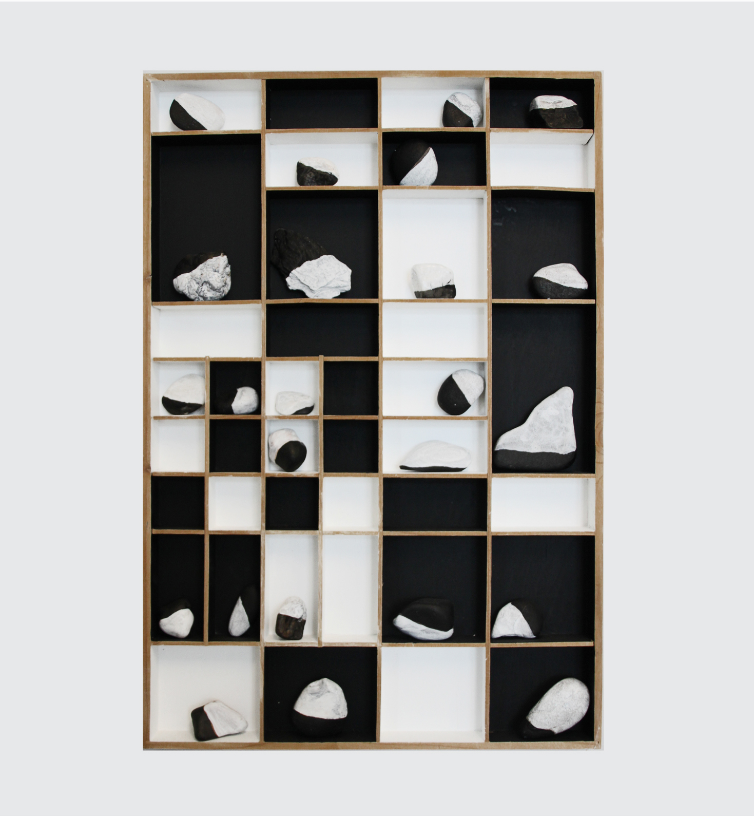 bemalte Steine in bemaltem Setzkasten