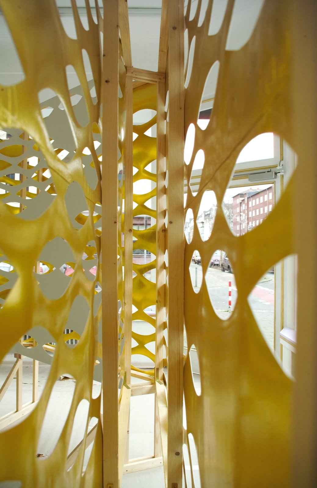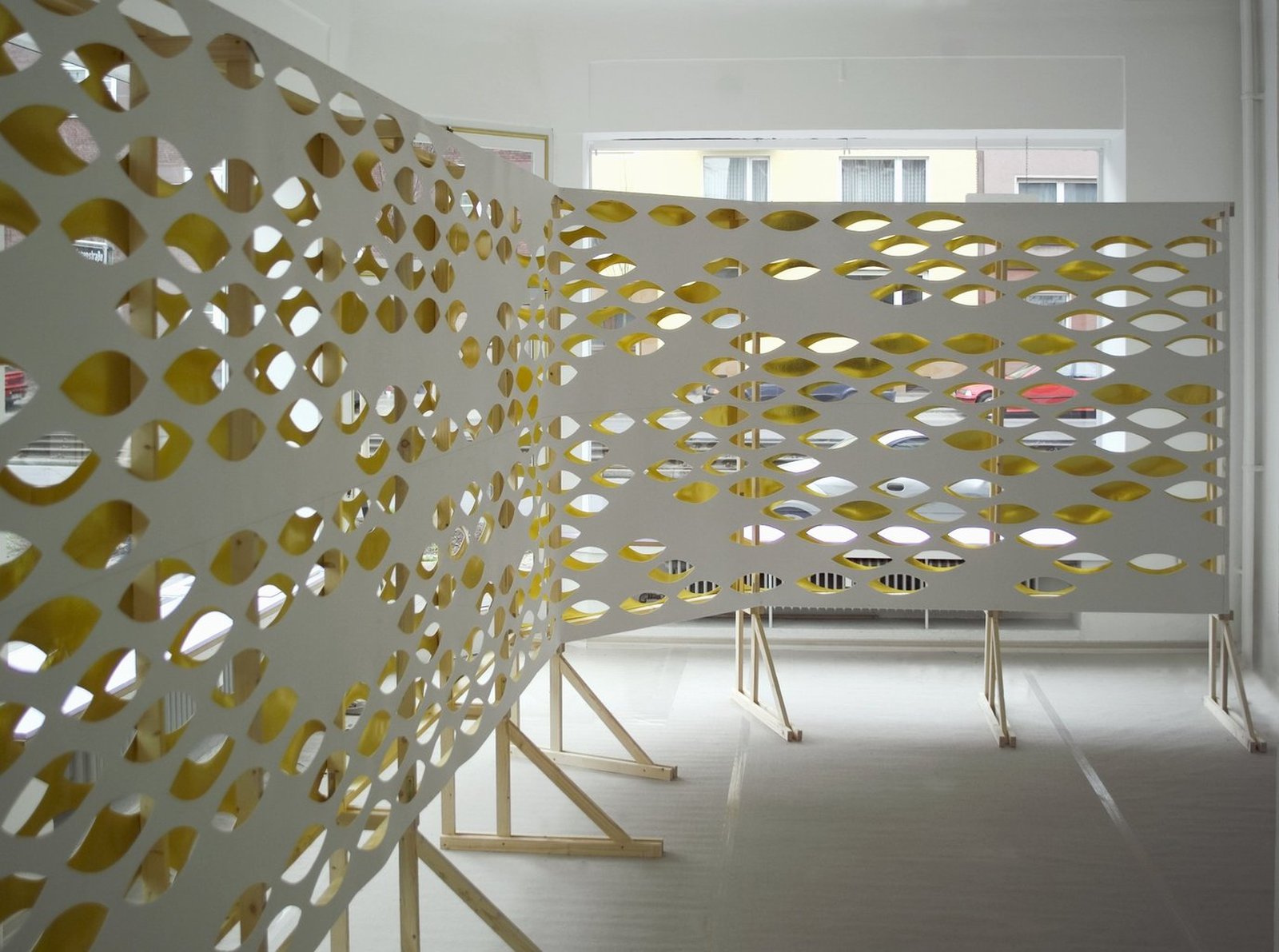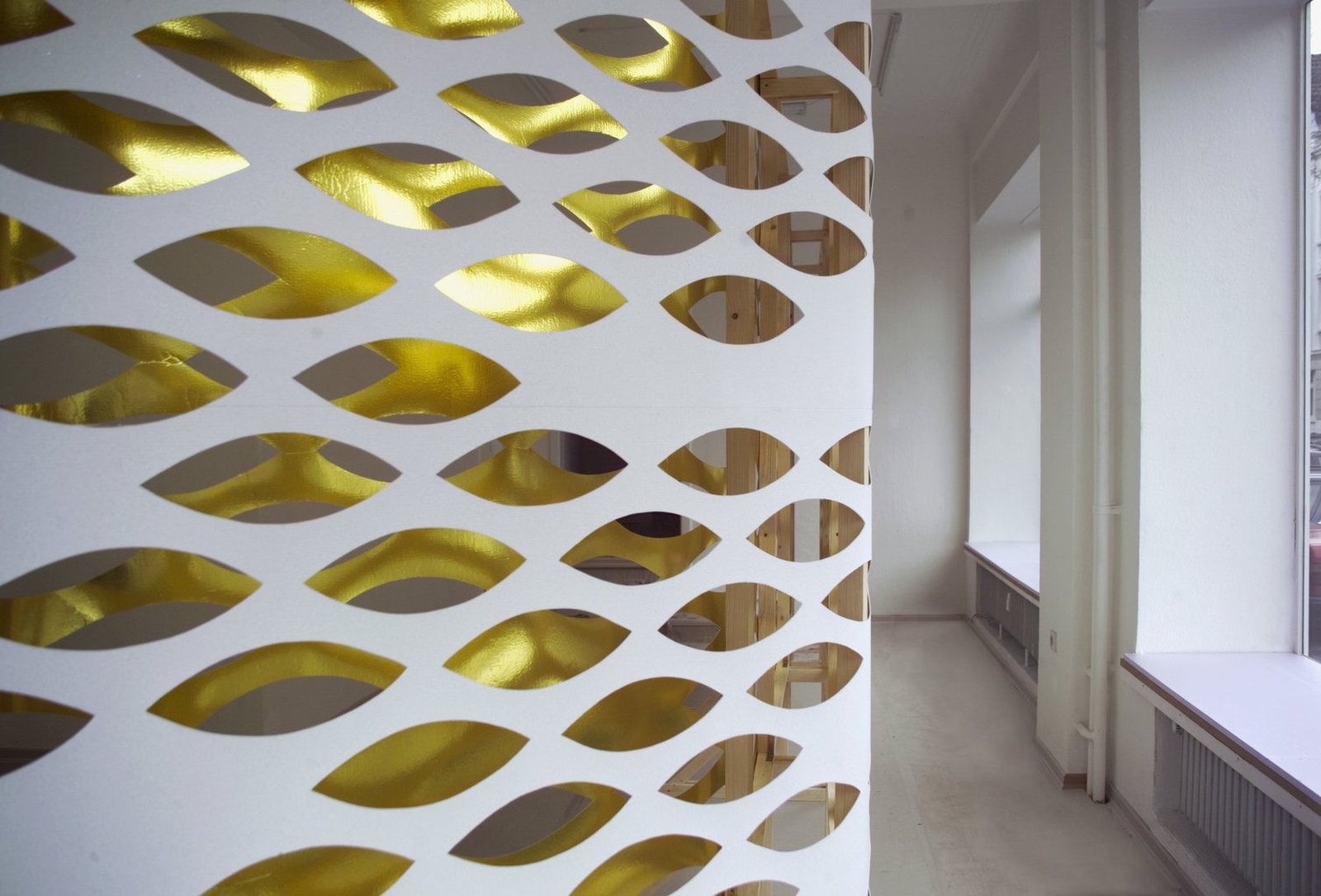 In/Out Holzkonstruktion bespannt mit Styropor und Metallfolie Galerie plan.d Düsseldorf 2007 Fotos von Susanne Brodhage