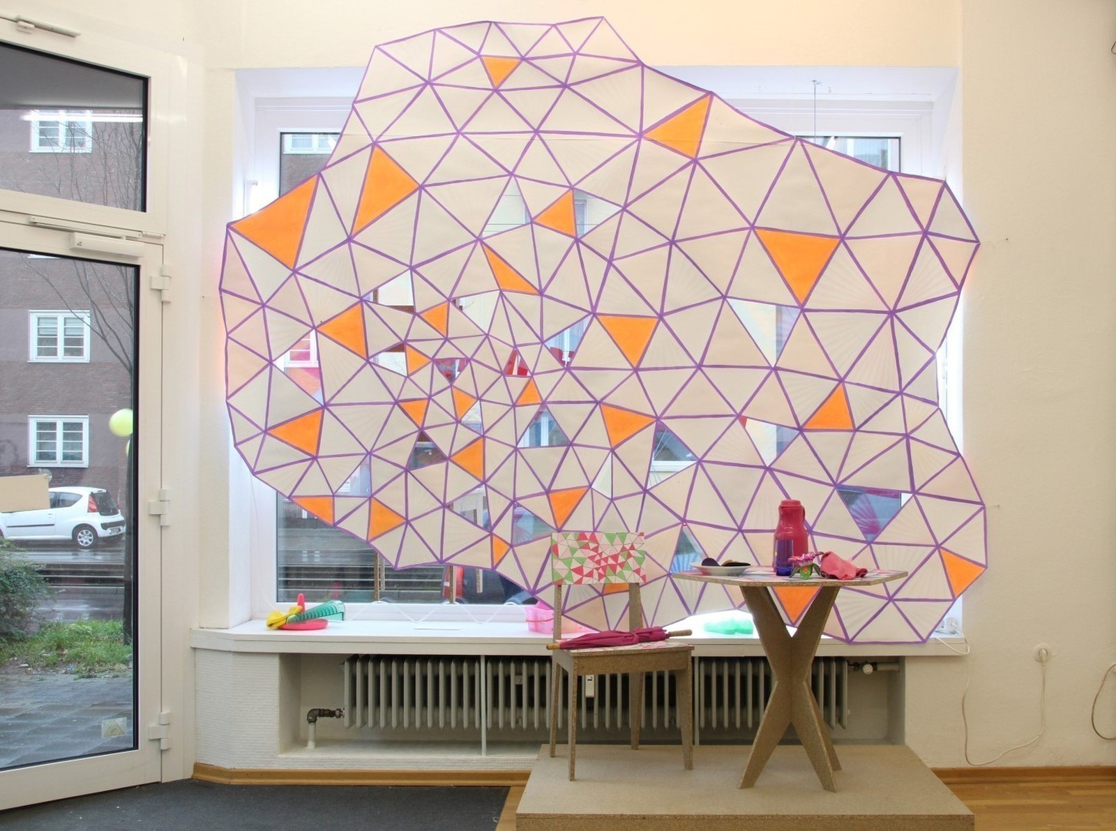 Kr-Design Rauminstallation aus angefertigten Möbeln und gefundenen Gebrauchsgegenständen gezeigt im Rahmen der Ausstellung „Neueröffnung“ Galerie plan.d Düsseldorf 2015 Fotos von Utta Hagen