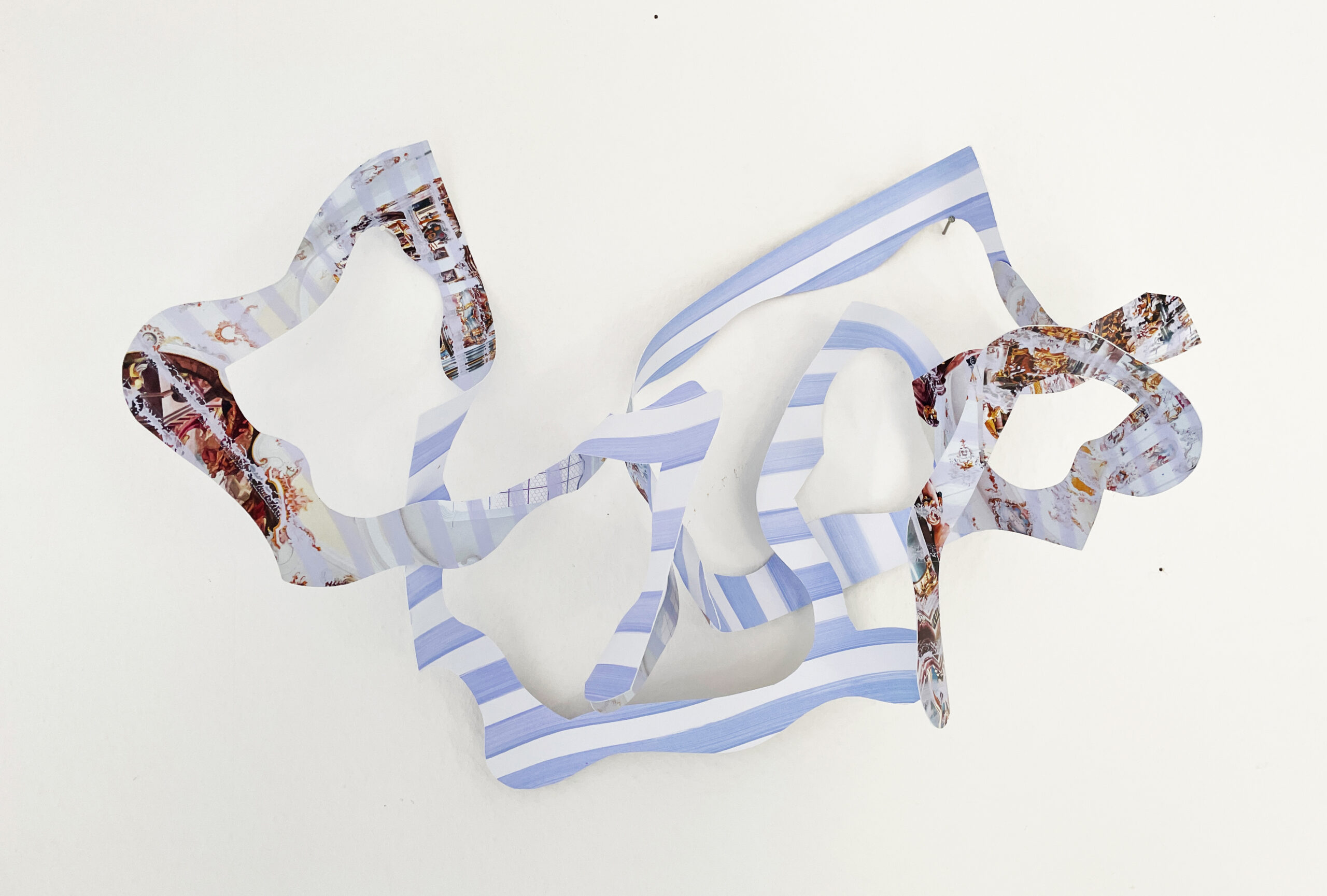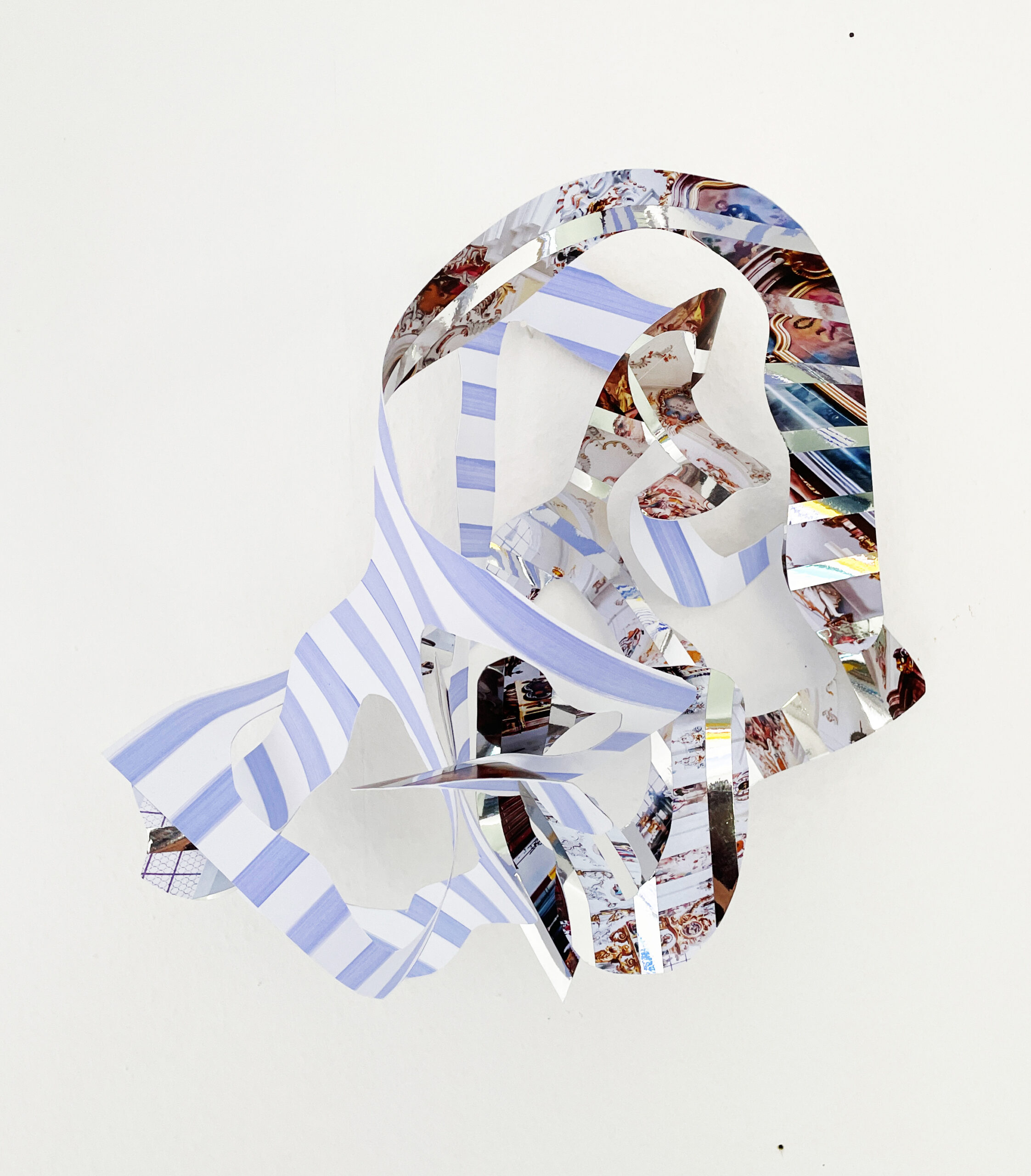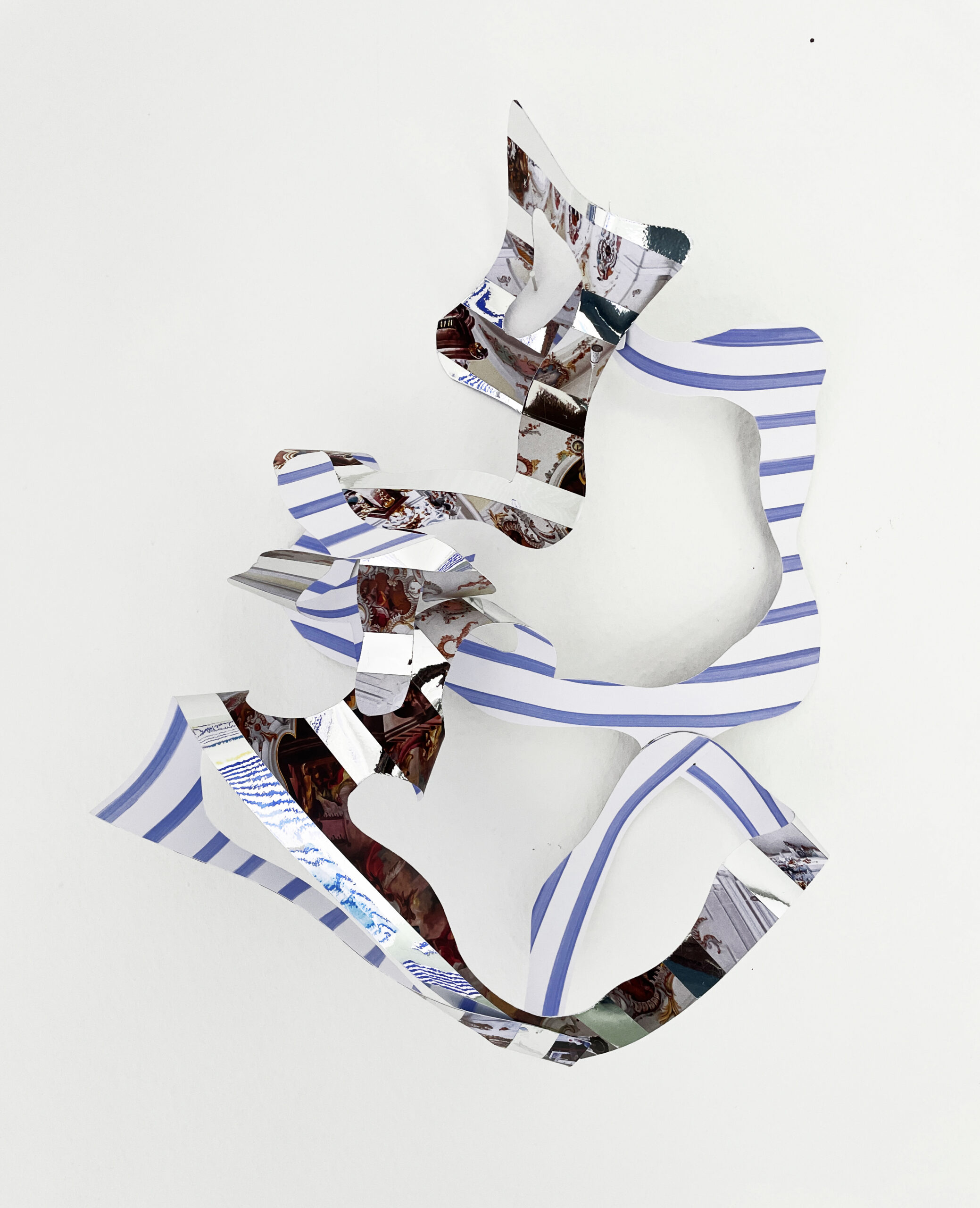 Acrylfarbe und Spiegelfolie auf Fotografien von barocken Räumen, zerschnitten und verklebt