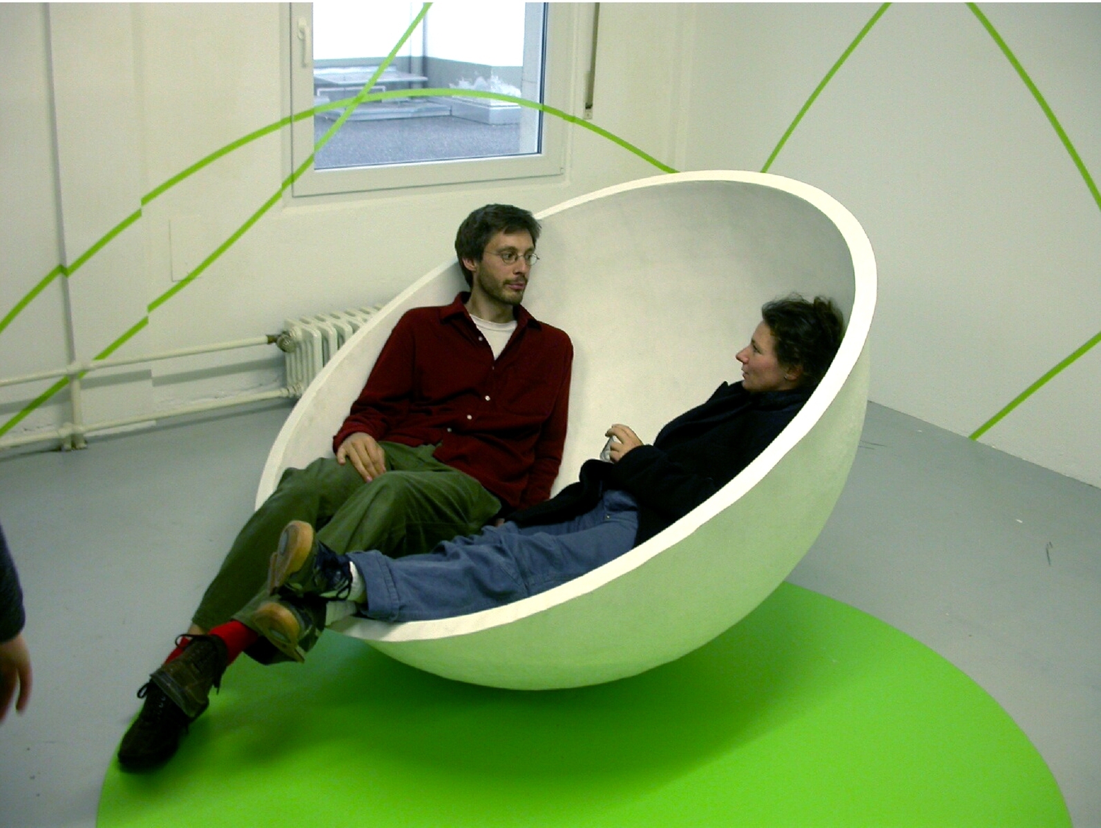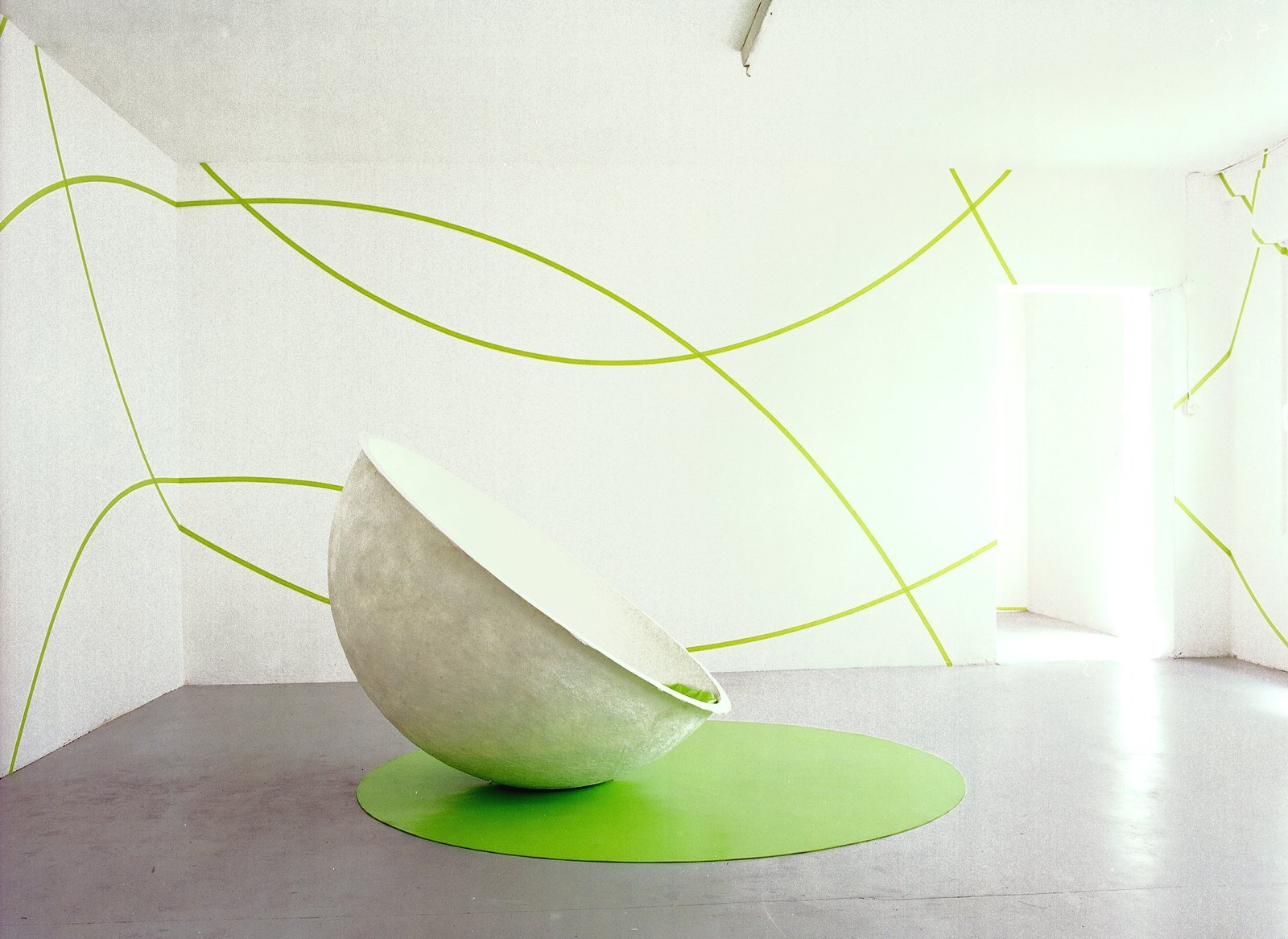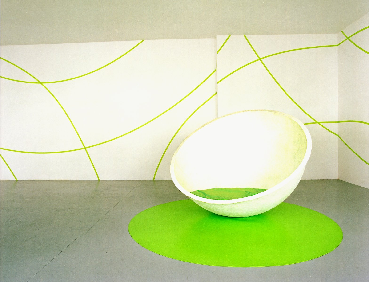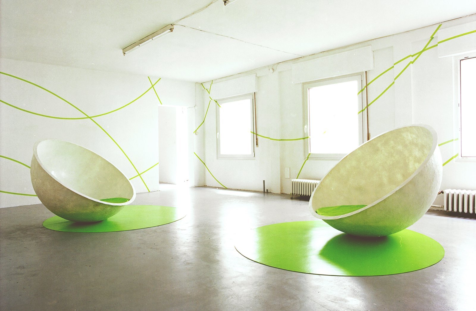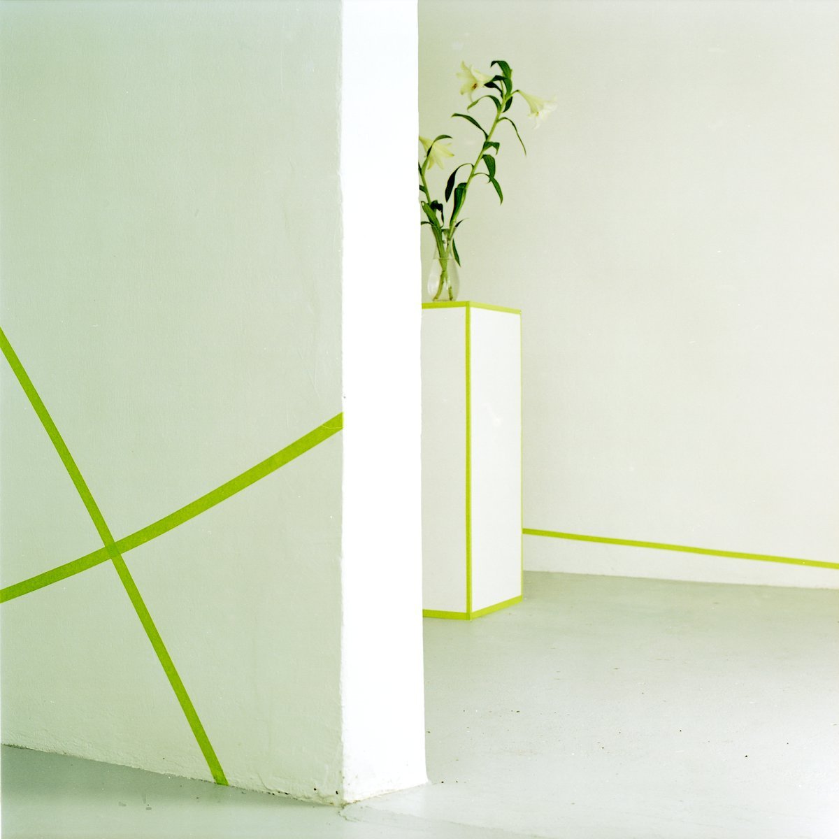 volume no. 9 Rauminstallation Farbiges Klebeband und Sitzschalen aus Polyester Galerie plan.d Düsseldorf 2004 Fotos von Jü Walter